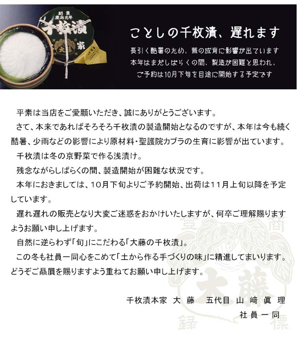 土から作る手づくりの味。京漬物 千枚漬発祥の店