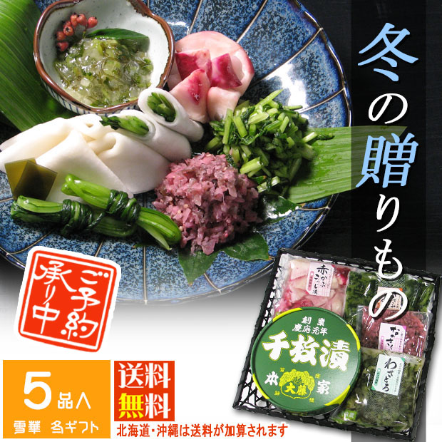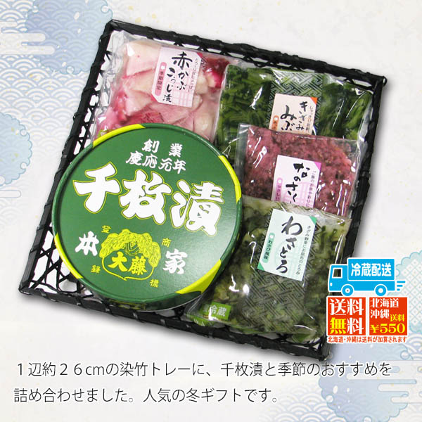 ◆◆◆ 冬ギフト・お歳暮に ◆ 染め竹トレーに千枚漬とお漬物 ◆◆◆