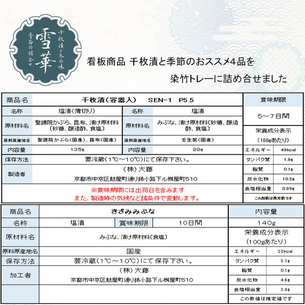 京名産・千枚漬と自慢の冬味4品を染竹トレーに詰め合せました。