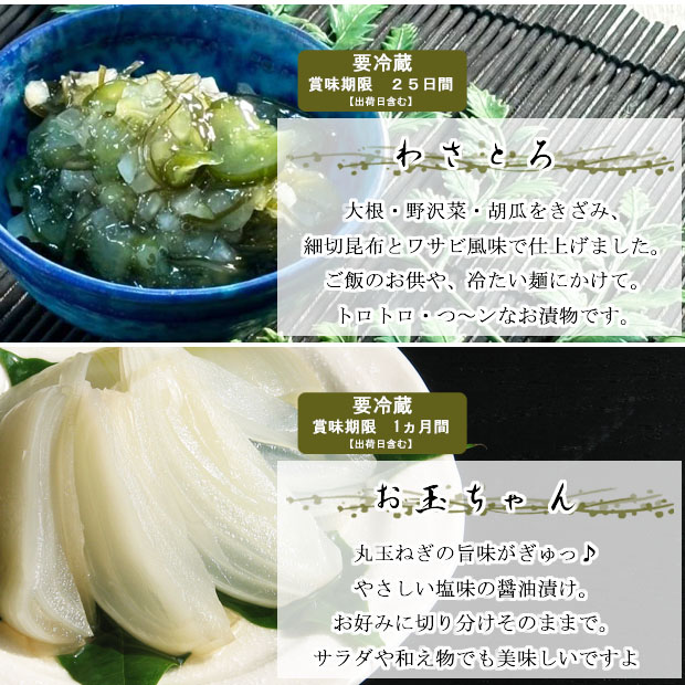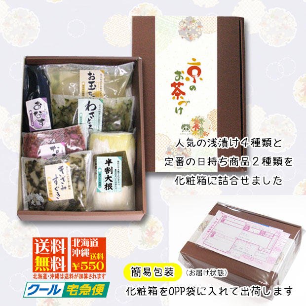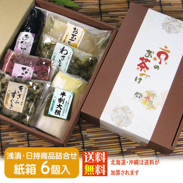 浅漬4品と、人気の定番・自慢の味を2品。味わい豊かな6品を化粧箱に詰合せました。