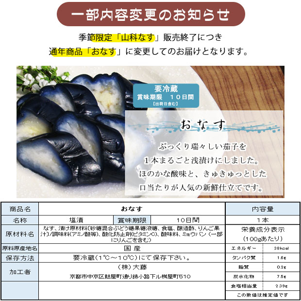 ほんのり酸っぱい茄子の浅漬 ◆ 冷たくして召し上がれ ぷっくりつやつや、新鮮な茄子を丸ごと浅漬にしました。人気の定番商品です。 浅漬のお漬物です。冷蔵庫に保存の上、お早めにお召し上が…