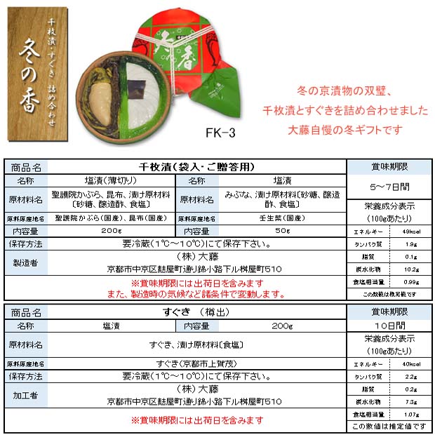 冬の京漬物の双璧、千枚漬とすぐきを詰め合わせました。