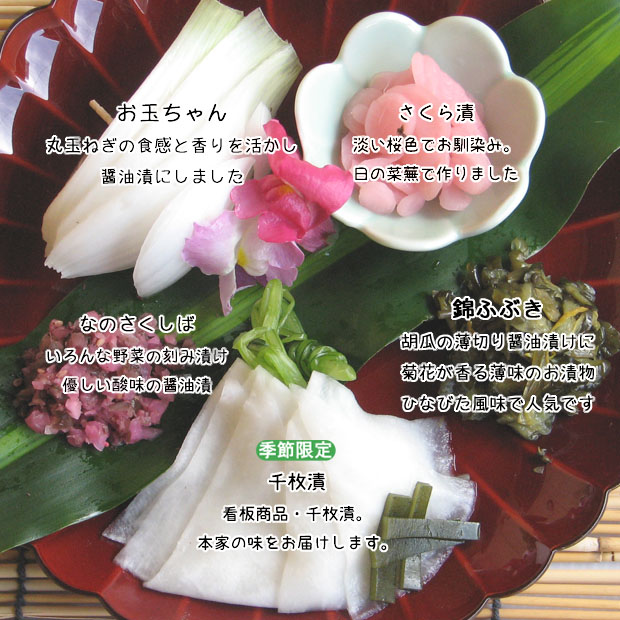 数多い京都の漬物から季節の味をチョイスし、お試しセットを作りました。