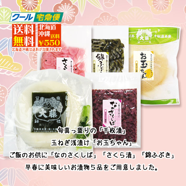 春浅い季節の京都のお漬物 ◆ お試しセット5品入り 季節に逆らわず、旬を食すべし 弊店看板商品・千枚漬けと早春の味。