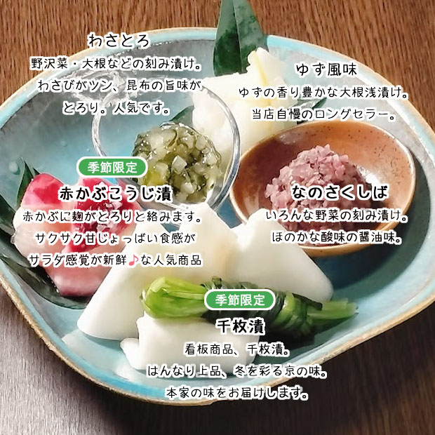 冬の京都のお漬物 ◆ お試しセット5品入り弊店看板商品・千枚漬け、お試しセットにご用意できました。 職人が吟味した、今の時期におすすめの自慢の味の詰め合せ…